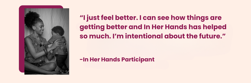 In Her Hands is a no-strings-attached income support program. Participants experience greater financial stability, fewer evictions, greater goal attainment and better overall health compared to the control group. However, data alone only tells a fraction of the story. Our participants' experiences most clearly reflect the impact of no-strings-attached income support.